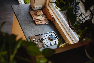 Bár kategóriáját tekintve Tiny House, mégis tágas, kényelmes. Ugyan a lakókocsik unokája, mégis teljes értékű konyhával, mosdóval és zuhanyóval és egy hatalmas franciaággyal van felszerelve.